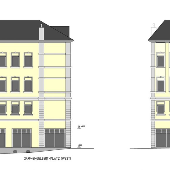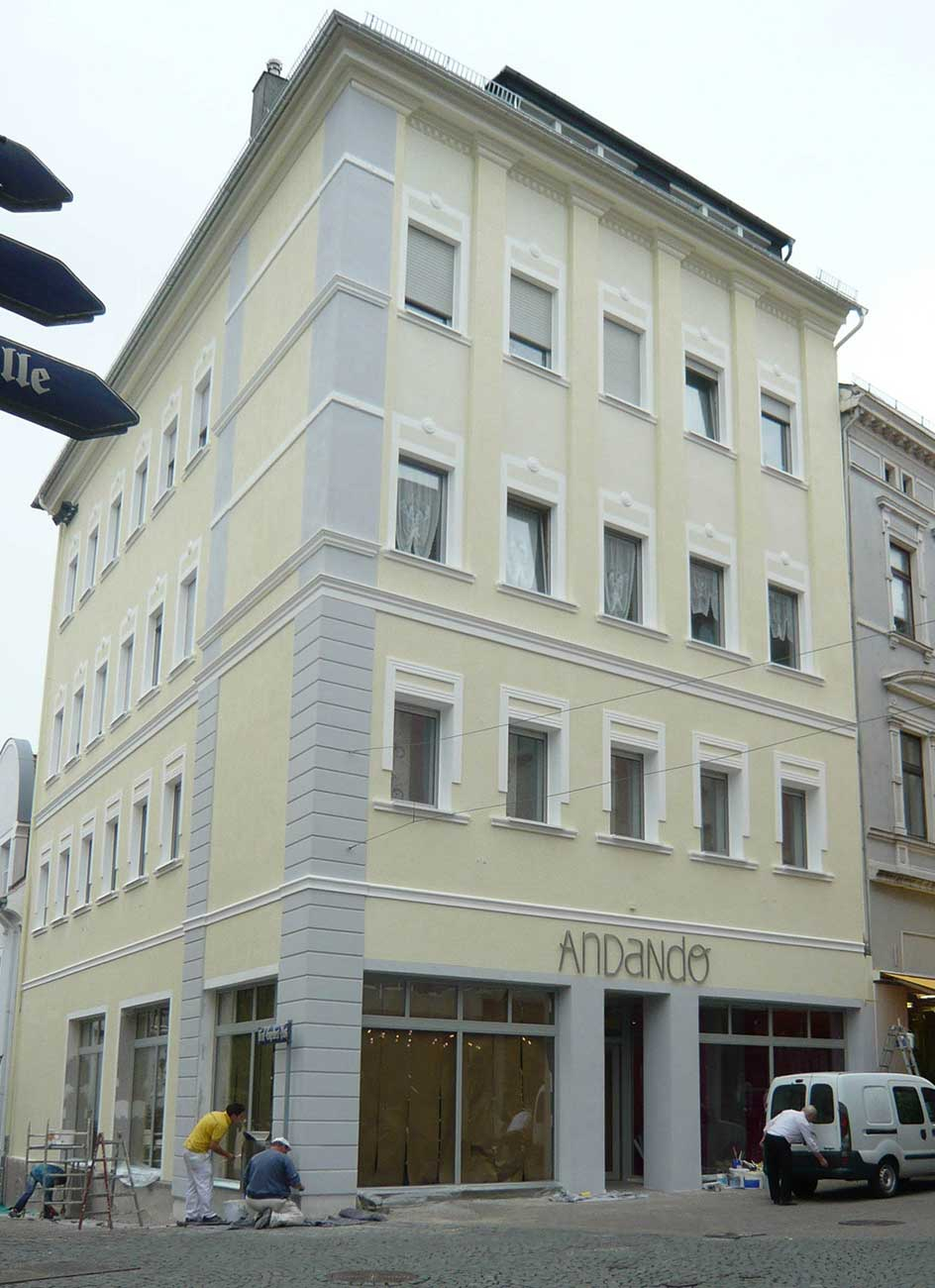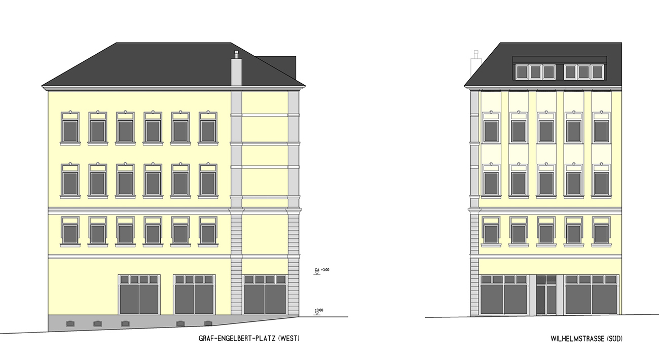 Die Bauherrschaft plante am Gebäude Wilhelmstraße 45 in Lüdenscheid den Umbau eines Ladens im Erdgeschoss und die Sanierung der Fassaden. Die bestehende zurückliegende Schaufensterfront und der Eingangsbereich des Ladens im Erdgeschoss wurden abgebrochen und an die Straßenfront vorgezogen. Zum Graf-Engelbert-Platz hin wurden drei neue Schaufenster geschaffen. Die Fassaden zur Wilhelmstraße und zum Graf-Engelbert-Platz erhielten Stuckelemente in Anlehnung an die historische Fassade von 1905.